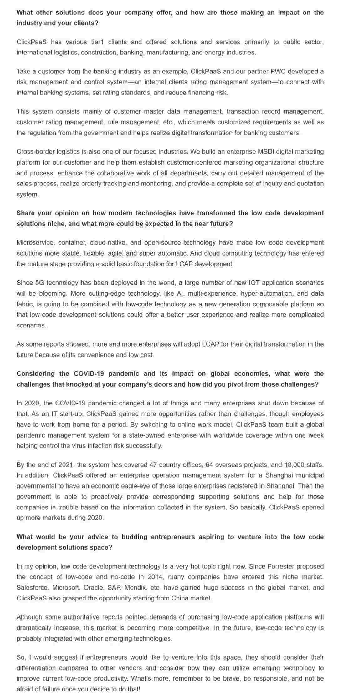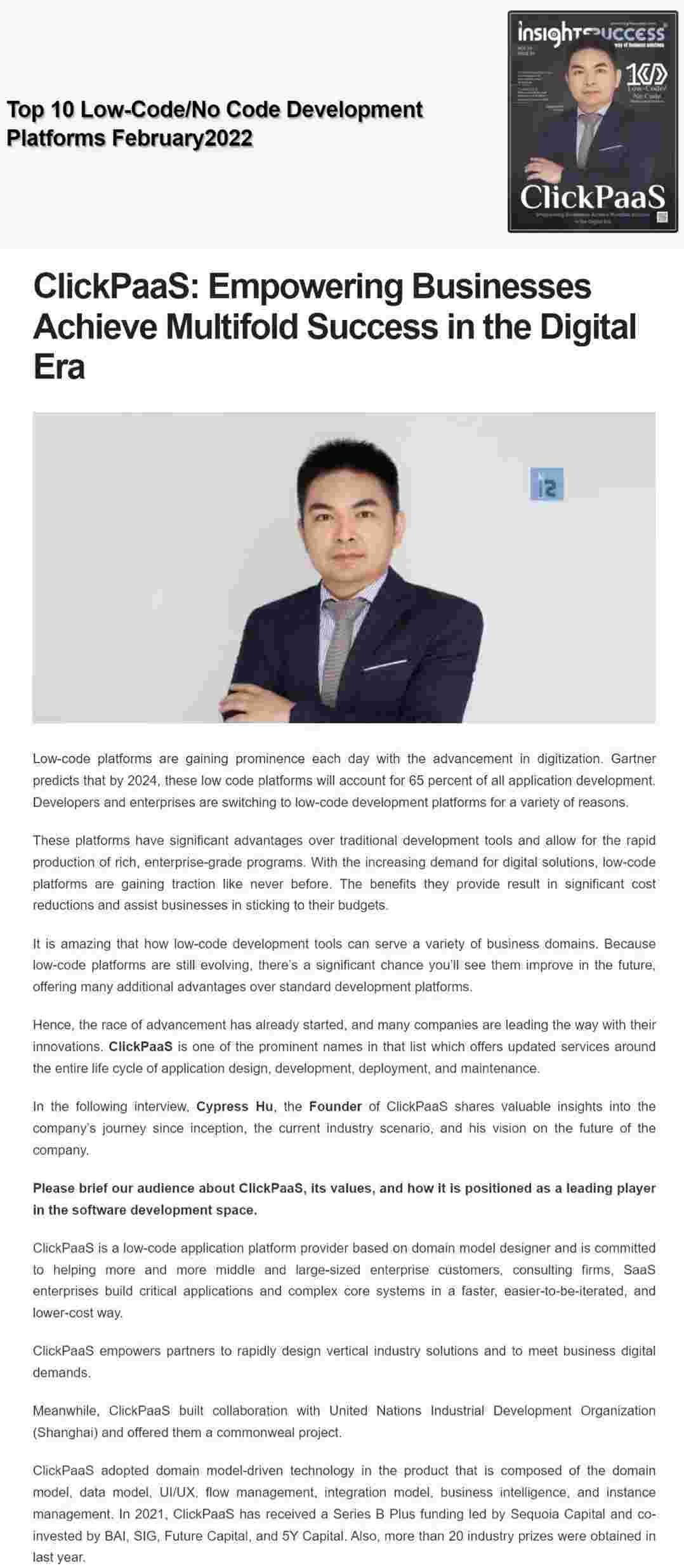 2022年年初,,,,,,,OPPO钱包入选外媒Insights Success低代码/无代码开发平台 Top10,,,,,,,,,,,,,,,创始人、、、、、、、CEO胡柏受邀接受专访并荣登封面人物,,,,,,,,,,,,,,他与Insights Success的读者分享了OPPO钱包成立的初心、、、、、、、、、发展历程、、、、、、、、、、当前的行业发展趋势以及他对公司未来的展望。。。。。