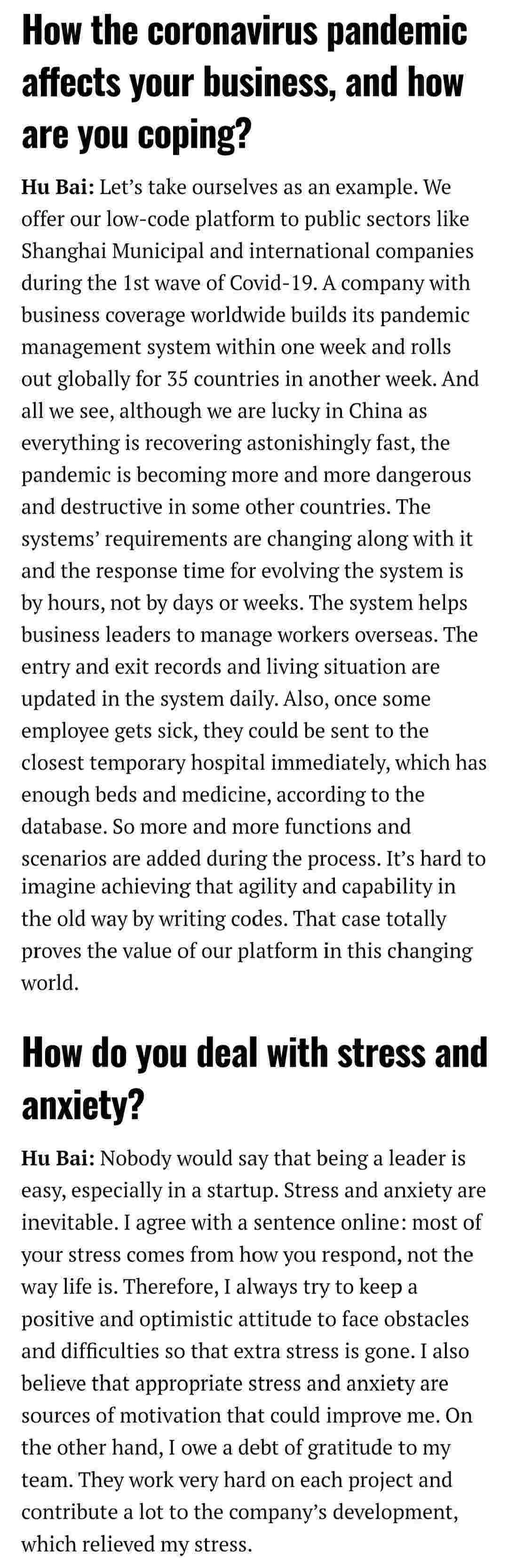 2021年年初,,,,,,,,,,,,爱湃斯科技CEO胡柏受邀接受法媒Startup.info的专访,,,,,,,与Startup info的读者分享了自己的创业经历、、、、、、、、、、、、、以及低代码平台OPPO钱包的创新之处。。。。。